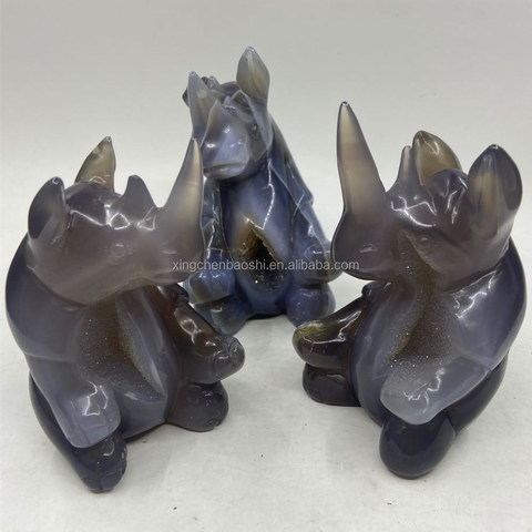가정 장식을위한 손 조각 천연 정동석 마노 크리스탈 코뿔소